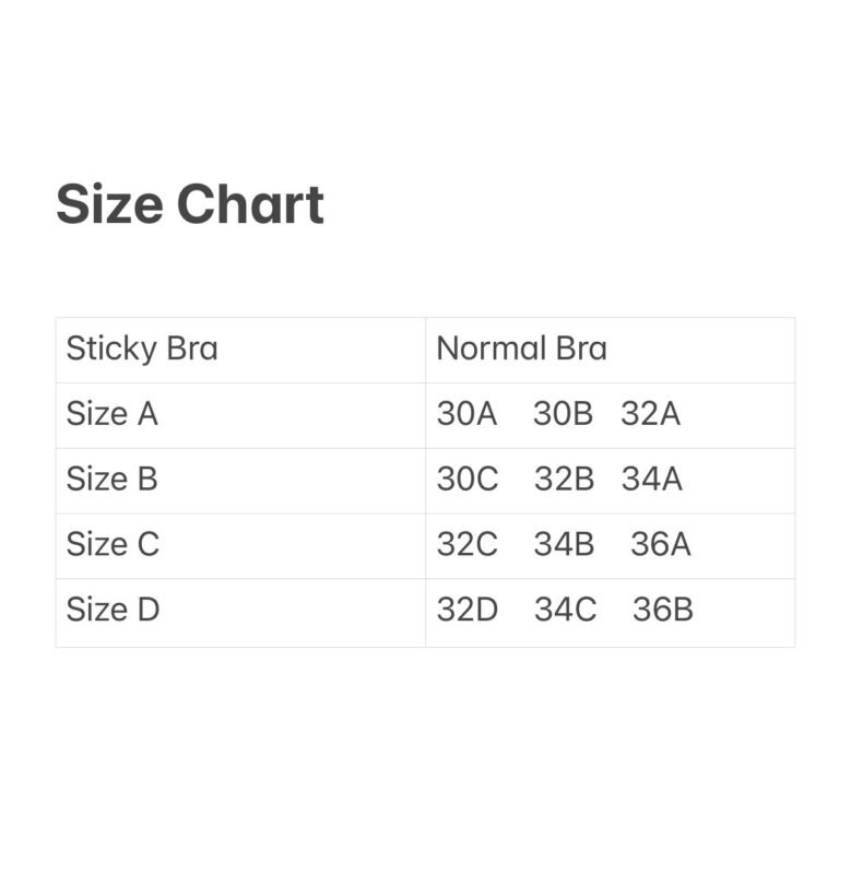 Categories: Invisible Essentials, Size Chart 18, Stick On Bra